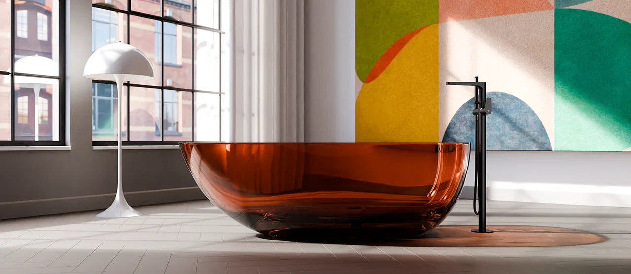 Η μοναδική καθαρότητα και διαφάνεια της σειράς Polyresin χαρίζει σε κάθε νιπτήρα και μπανιέρα μια αίσθηση κομψότητας και υψηλής αισθητικής. Το φως αντανακλάται πάνω στην επιφάνεια, αναδεικνύοντας τα χρώματα που αποκτούν ζωντάνια και ένταση.